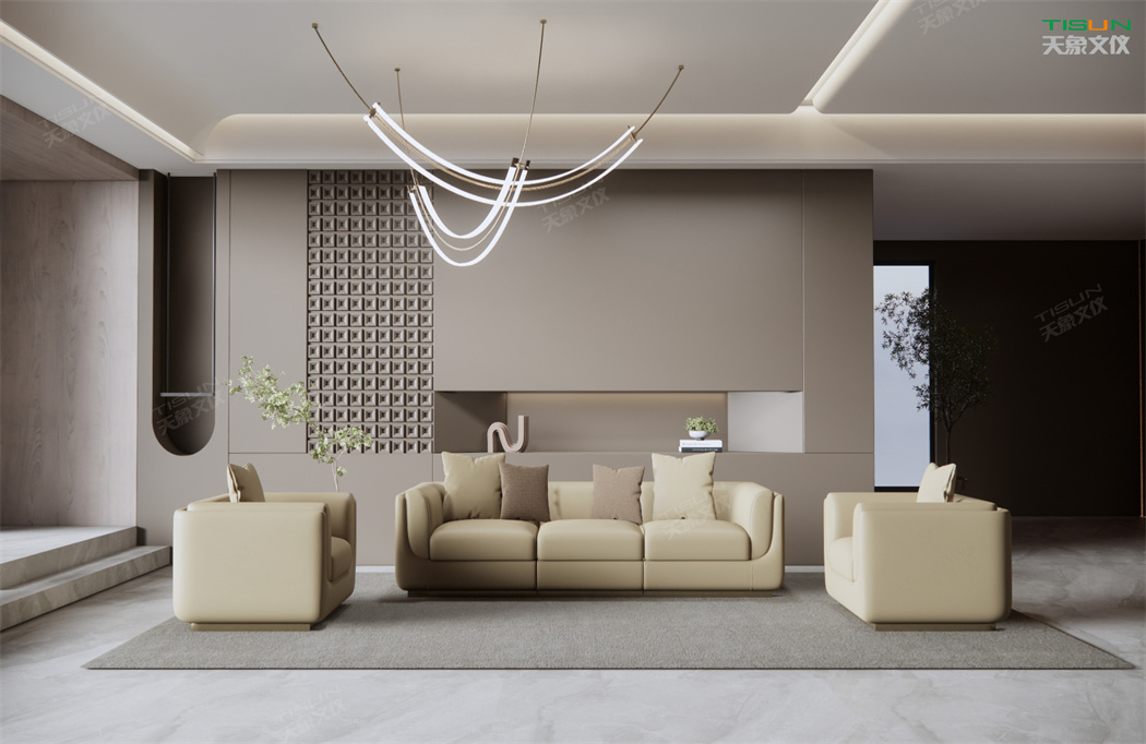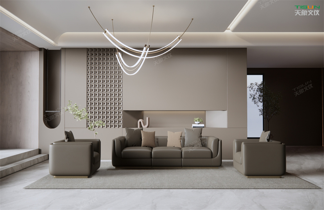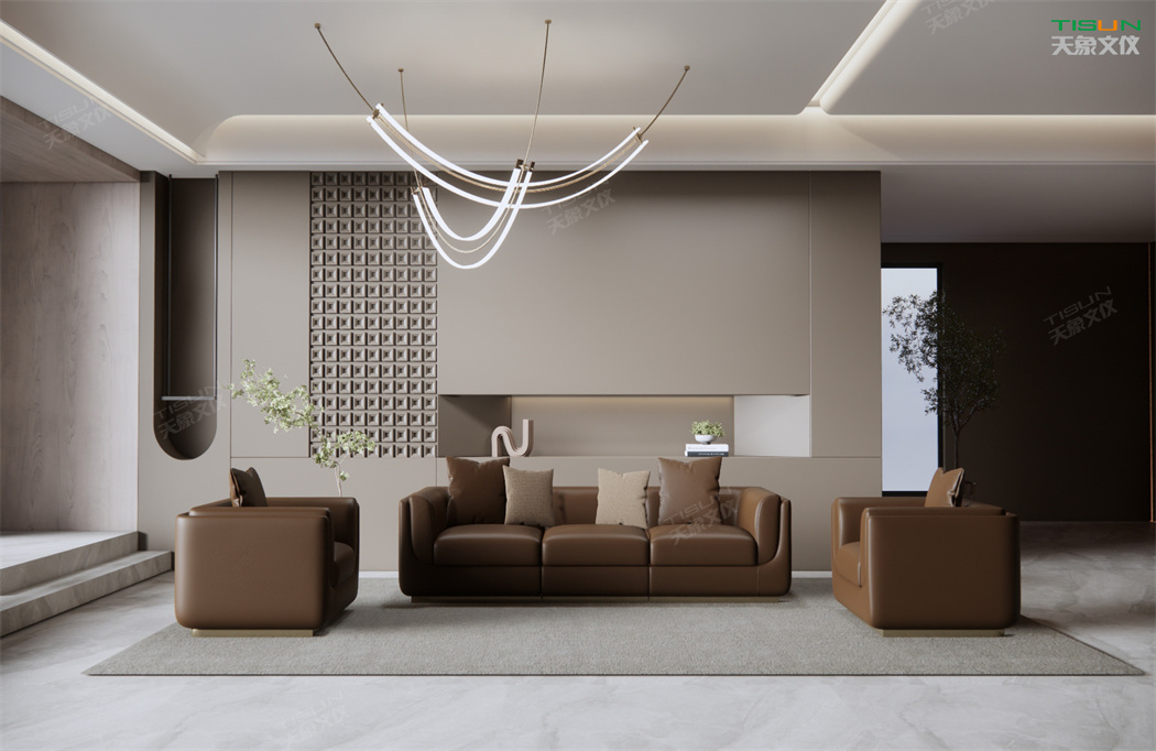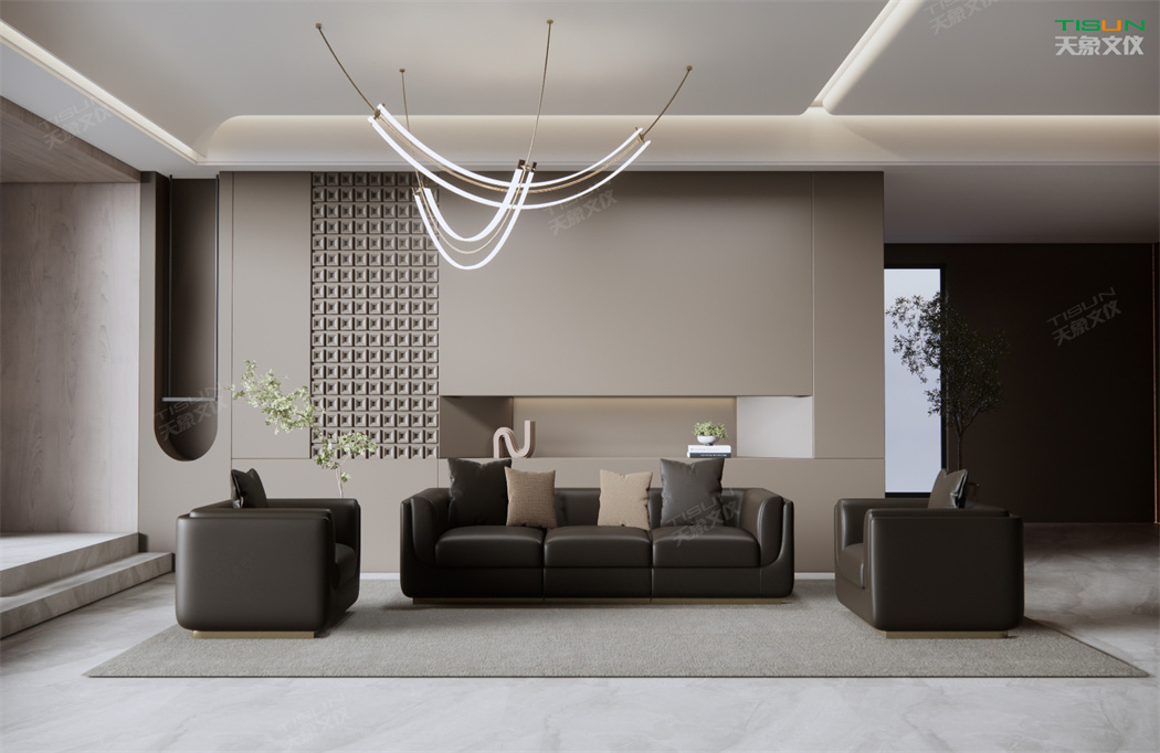 高級的辦公沙發(fā)在設(shè)計中運用真皮材質(zhì)及考究的造型,體現(xiàn)主人對工作及生活的至高追求,同時凸顯辦公空間的高雅品質(zhì)。